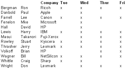 - PWG-ANNOUNCE> Update: 11-15 September PWG Meeting, Chicago Cindy Tiritilli (Wed Sep 06 2000 - 12:34:46 EDT)