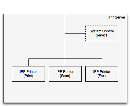 I'm a little confused on what you have labeled as an IPP Server and IPP Printer. My view is that an IPP Server is what you have labeled as IPP Printer. It contains the required protocol stacks, resources and service instances. I have always understood an IPP Printer to be an instance of a Print Service. This would map to a Virtual Printer in ISO 10175 DPA.