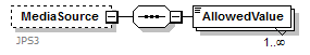 | source | <xs:element name="MediaSource" minOccurs="0"> <xs:annotation> <xs:documentation>JPS3</xs:documentation> </xs:annotation> <xs:complexType> <xs:sequence> <xs:element name="AllowedValue" maxOccurs="unbounded"> <xs:simpleType> <xs:union memberTypes="MediaSourceWKV KeywordNsExtensionPattern"/> </xs:simpleType> </xs:element> </xs:sequence> </xs:complexType> </xs:element> |