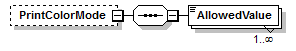 | source | <xs:element name="PrintColorMode" minOccurs="0"> <xs:complexType> <xs:sequence> <xs:element name="AllowedValue" maxOccurs="unbounded"> <xs:simpleType> <xs:union memberTypes="PrintColorModeWKV KeywordNsExtensionPattern"/> </xs:simpleType> </xs:element> </xs:sequence> </xs:complexType> </xs:element> |