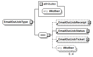 | source | <xs:complexType name="EmailOutJobType"> <xs:sequence> <xs:element ref="EmailOutJobReceipt" minOccurs="0"/> <xs:element ref="EmailOutJobStatus"/> <xs:element ref="EmailOutJobTicket" minOccurs="0"/> <xs:any namespace="##other" minOccurs="0" maxOccurs="unbounded"/> </xs:sequence> <xs:anyAttribute namespace="##other" processContents="lax"/> <!-- EmailOutJob - object --> </xs:complexType> |