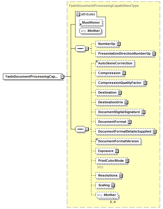 | children | NumberUp PresentationDirectionNumberUp AutoSkewCorrection Compression CompressionQualityFactor Destination DestinationUris DocumentDigitalSignature DocumentFormat DocumentFormatDetailsSupplied DocumentFormatVersion Exposure PrintColorMode Resolutions Scaling | ||||||||||||