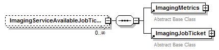 | source | <xs:element name="ImagingServiceAvailableJobTicket"> <xs:annotation> <xs:documentation>AbstractBaseClass</xs:documentation> </xs:annotation> <xs:complexType> <xs:sequence> <xs:element name="ImagingServiceAvailableJobTicketEntry" minOccurs="0" maxOccurs="unbounded"> <xs:complexType> <xs:sequence> <xs:element ref="ImagingMetrics"/> <xs:element ref="ImagingJobTicket"/> </xs:sequence> </xs:complexType> </xs:element> </xs:sequence> </xs:complexType> </xs:element> |