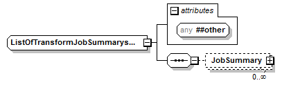 | source | <xs:complexType name="ListOfTransformJobSummarysType"> <xs:sequence> <xs:element name="JobSummary" type="TransformJobSummaryType" minOccurs="0" maxOccurs="unbounded"/> </xs:sequence> <xs:anyAttribute namespace="##other" processContents="lax"/> </xs:complexType> |