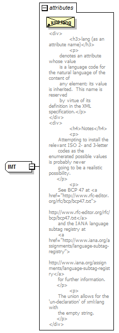 | Name | Type | Use | Default | Fixed | annotation | | lang | derived by: xs:language | prohibited | | | | documentation | <div>