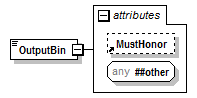 | source | <xs:element name="OutputBin"> <xs:complexType> <xs:simpleContent> <xs:extension base="OutputBinType"> <xs:attribute ref="MustHonor"/> <xs:anyAttribute namespace="##other"/> </xs:extension> </xs:simpleContent> </xs:complexType> </xs:element> |
