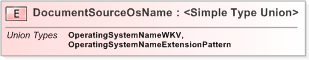 <?xml version="1.0" encoding="utf-16"?> <xs:element name="DocumentSourceOsName"> <xs:simpleType> <xs:union memberTypes="OperatingSystemNameWKV OperatingSystemNameExtensionPattern" /> </xs:simpleType> </xs:element>