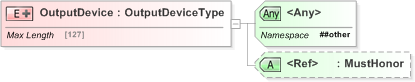 <?xml version="1.0" encoding="utf-16"?> <xs:element name="OutputDevice"> <xs:complexType> <xs:simpleContent> <xs:extension base="OutputDeviceType"> <xs:attribute ref="MustHonor" /> <xs:anyAttribute namespace="##other" /> </xs:extension> </xs:simpleContent> </xs:complexType> </xs:element>